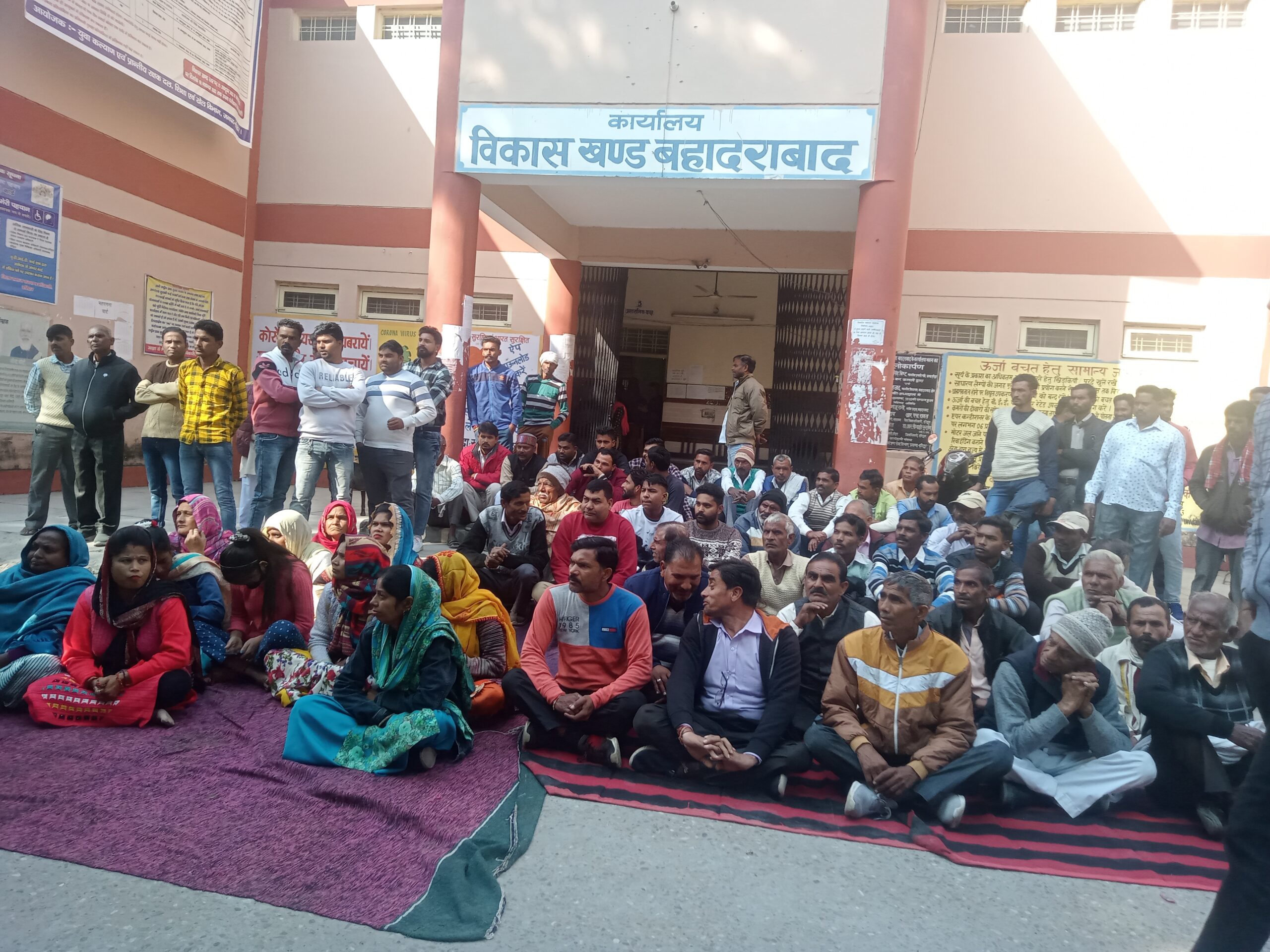 नवनिर्वाचित ग्राम प्रधान को चार्ज ना देने पर ग्रामीणों ने ब्लॉक बहादराबाद के परिसर में मंगलवार को किया धरना प्रदर्शन,