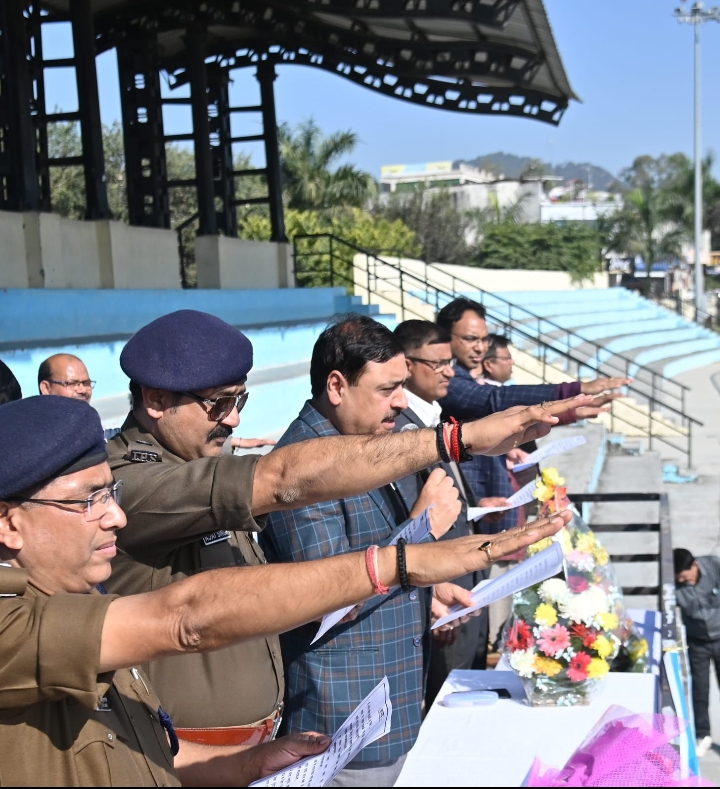 जिलाधिकारी विनय शंकर पाण्डेय ने शुक्रवार को कार्यक्रम स्थल भल्ला स्टेडियम में दैनिक जागरण व जिला प्रशासन यातायात के नियमों का पालन करने व आम जन में जागरूकता पैदा करने के उद्देश्य से शपथ ग्रहण कार्यक्रम आयोजित किया गया जिसमे अधिकारियों, कार्मिकों, मीडिया से जुड़े बन्धु,मौजूद रहे।