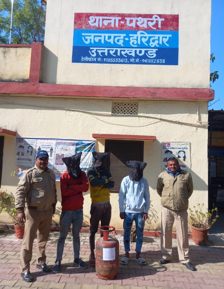 थाना पथरी पुलिस टीम द्वारा जनसहयोग से सिलेंडर चोरी कर रहे 03 अभियुक्तों को दबोचा गया।