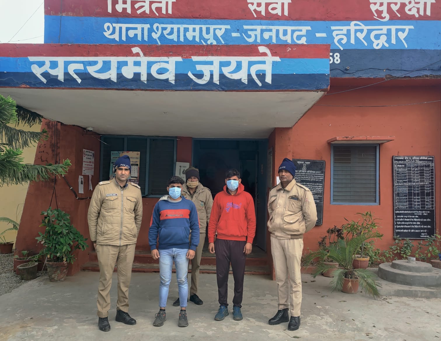 थाना श्यामपुर एसएसपी हरिद्वार द्वारा इनामी अपराधियों की गिरफ्तारी हेतु दिए गए कड़े दिशा निर्देशों के क्रम में पुलिस टीम द्वारा थाना श्यामपुर पर मु0अ0स0 162/ 22 धारा 2/3 गैंगस्टर अधिनियम से संबंधित 5000/5000 हजार के दो इनामी वांछित अपराधियों को दबोचा गया।