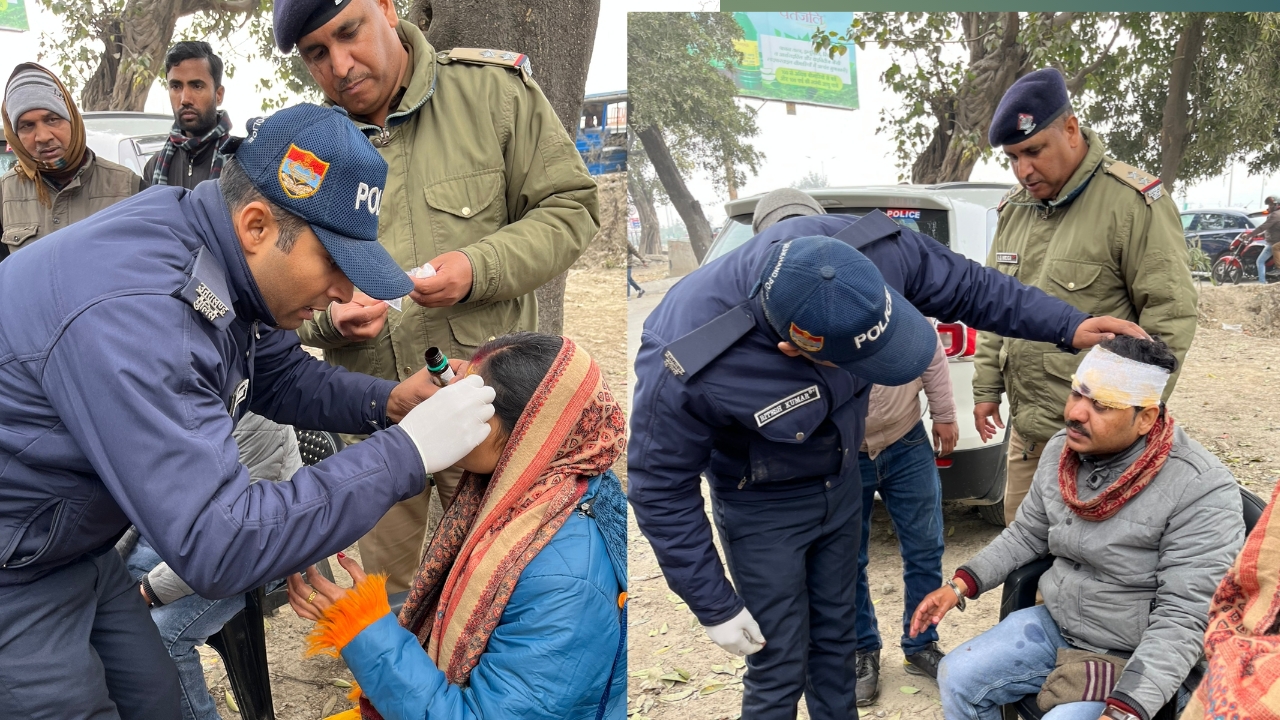 जिस पर ट्रैफिक ड्यूटी पर तैनात पुलिस कर्मी रितेश कुमार द्वारा दोनो घायलों को ढांढस बंधाते हुए अपने निजी वाहन से फर्स्ट एड किट का इस्तेमाल कर दोनो को प्राथमिक उपचार देते हुए सरकारी अस्पताल भिजवाया गया।