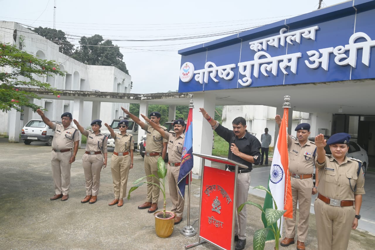 12 अगस्त 2023 को आजादी के अमृत महोत्सव के अंतर्गत “मेरी माटी मेरा देश” अभियान में आज एसएसपी हरिद्वार अजय सिंह द्वारा पुलिस कार्यालय में जनपद के सभी राजपत्रित अधिकारियों, थानाध्यक्ष व कार्यालय के समस्त अधिकारियों/कर्मचारियों को *”अमृतकाल के पंचप्रण”* की शपथ दिलाई साथ ही देश के शहीद वीर और वीरांगनाओं को सम्मान देते हुए उनके सर्वोच्च बलिदान को याद किया गया।