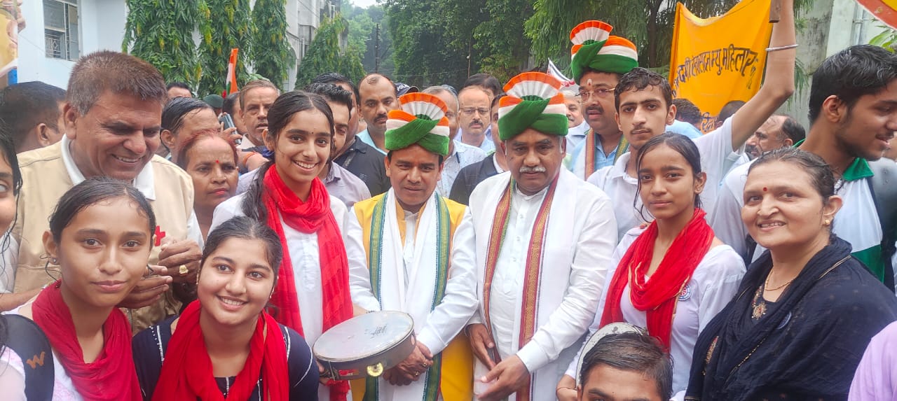 हरिद्वार प्रदेश के शिक्षा मंत्री डॉ० धनसिंह रावत व स्थानीय विधायक मदन कौशिक ने हरी झण्डी दिखाकर ऋषिकुल से तिरंगा यात्रा रवाना की गई। कार्यक्रम में बी.जे.पी के जिलाध्यक्ष संदीप गोयल महामंत्री विकास तिवारी अन्य स्थानीय जनप्रतिनिधि व कार्यकर्त्ता भी उपस्थित रहे। तिरंगा यात्रा देवपुरा चौक होते हुये पन्नालाल भल्ला म्यु0इ0का0कालेज मायापुर हरिद्वार तक आयोजित की गई, जिसमें बड़ी संख्या में स्थानीय विद्यालयों के विद्यार्थियों द्वारा देश प्रेम, वीर शहीदों के प्रति सम्मान प्रकट करते हुये झांकी, नुक्कड़ नाटक तथा नारों का प्रदर्शन किया गया। शिक्षा मंत्री डॉ० धनसिंह रावत व स्थानीय विधायक मदन कौशिक भी तिरंगे को हाथ में लेकर रैली में बच्चों के साथ मार्च पास्ट करते दिखे। बच्चों में गजब का उत्साह दिख रहा था l समापन स्थल पन्नालाल भल्ला म्यु०इ0का0कालेज मायापुर हरिद्वार में शिक्षा मंत्री डॉ० धनसिंह रावत द्वारा ध्वजारोहण किया गया गया। मदन कौशिक द्वारा पंच प्रण शपथ दिलाई गई “मैं शपथ लेता / लेती हूं कि मैं एक विकसित भारत के निर्माण में अपनी भूमिका निभाने की प्रतिज्ञा – – करता/करती हूं। मैं औपनिवेशिक मानसिकता के किसी भी निशान को मिटाने की प्रतिज्ञा करता / करती हूं। मैं हमारी समृद्ध सांस्कृतिक विरासत के प्रचार और संरक्षण पर गर्व करने की प्रतिज्ञा करता / करती हूं। मैं देश की एकता और एकजुटता के लिये प्रयास करने की प्रतिज्ञा करता/करती हूं। मैं अपने राष्ट्र के प्रति अपने कर्त्तव्यों और जिम्मेदारियों को पूरा करने की प्रतिज्ञा करता/करती हूं। मैं हमारे देश के बहादुरों के बलिदानों का सम्मान करने और देश की रक्षा और प्रगति के लिये खुद को समर्पित करने की प्रतिज्ञा करता/करती हूं। “