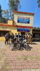 पथरी क्षेत्रांतर्गत लूट की कई घटना को अंजाम देने वाले चारों अभियुक्तों अनस, अरशद, जुनैद व मुस्तकीम को सुभाषगढ़ तिराहे से घटना में प्रयुक्त 03 बाइक, तमंचा 315 बोर, 02 जिंदा कारतूस, लोहे की रॉड, 03 मोबाइल व नगदी ₹12000 के साथ दबोचा गया।