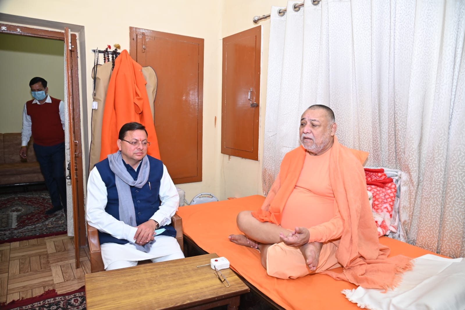 मुख्यमंत्री पुष्कर सिंह धामी ने सोमवार को कनखल स्थित आश्रम पहुंचकर जगद्गुरू राजराजेश्वराश्रम से शिष्टाचार भेंट कर लिया आशीर्वाद।
