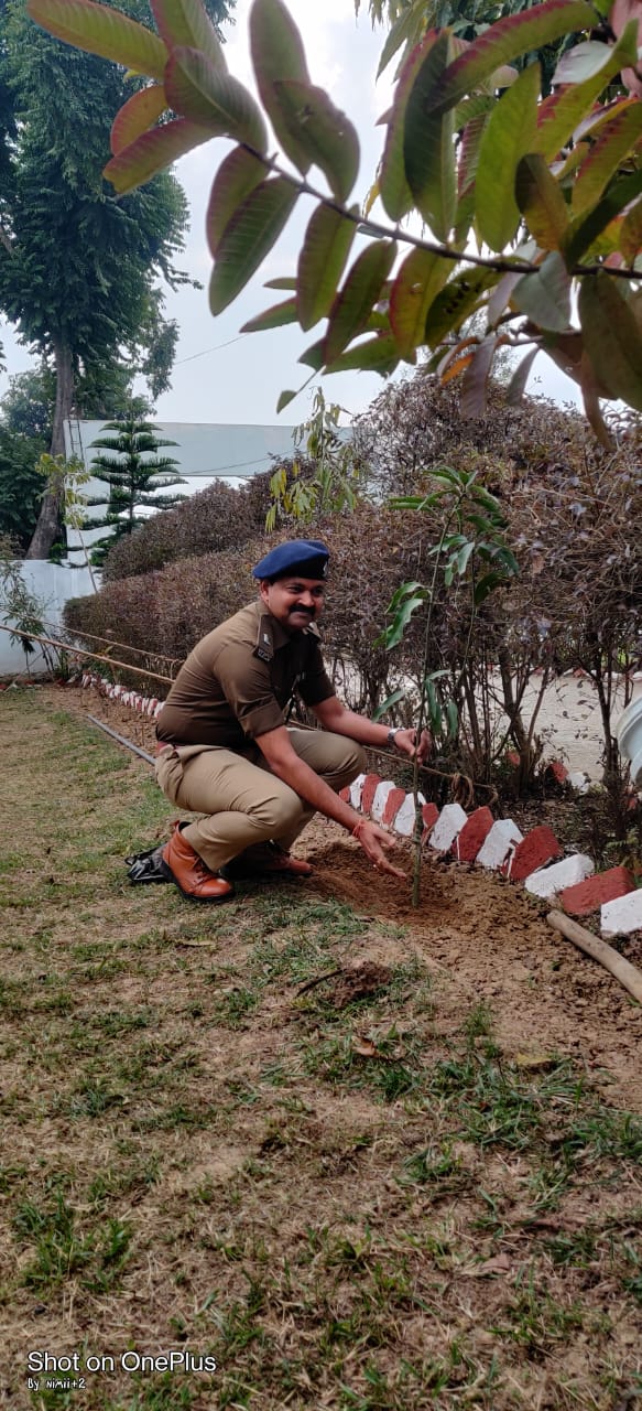 सेरेमोनियल गार्ड से सलामी के पश्चात स्वप्न किशोर द्वारा सर्वप्रथम थाना परिसर में वृक्षारोपड़ किया गया।