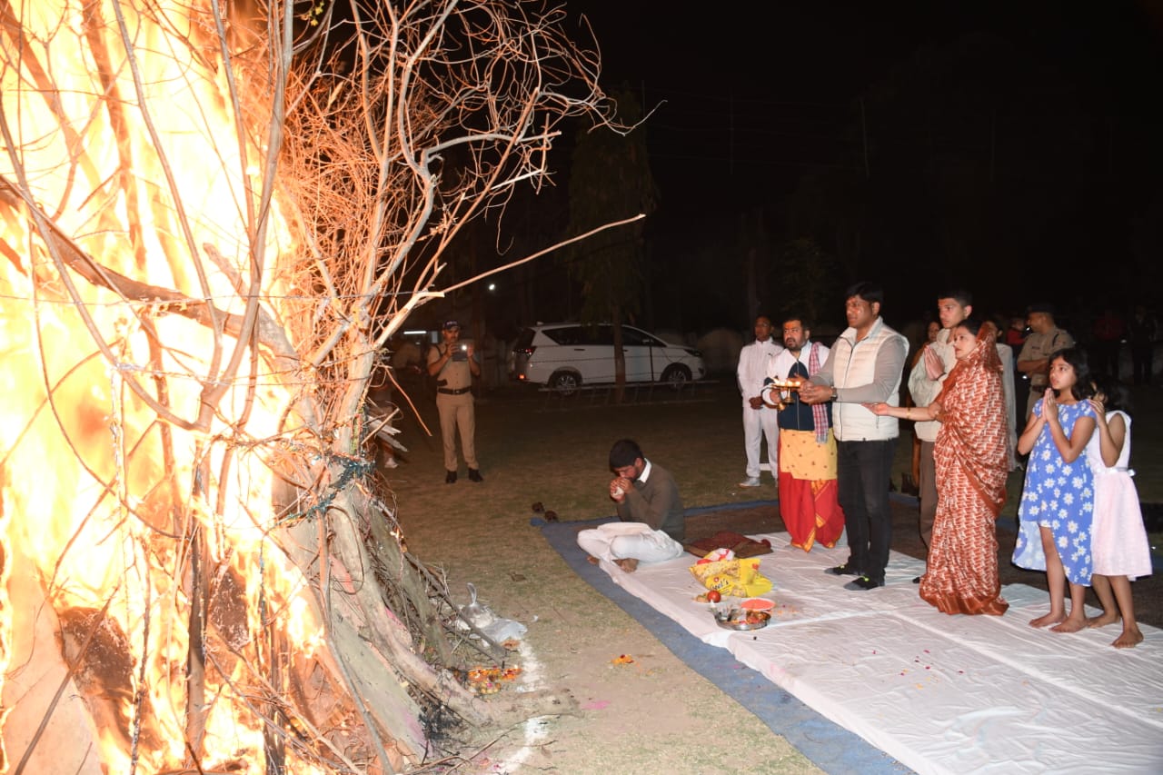 पुलिस लाइन रोशनाबाद के मंदिर प्रांगण में सभी अधिकारी व कर्मचारीगणों तथा पुलिस परिवार के बच्चों व परिजनों के साथ विधि-विधान से पूजा अर्चना उपरांत हर्षोल्लास के माहौल में होलिका दहन किया गया।