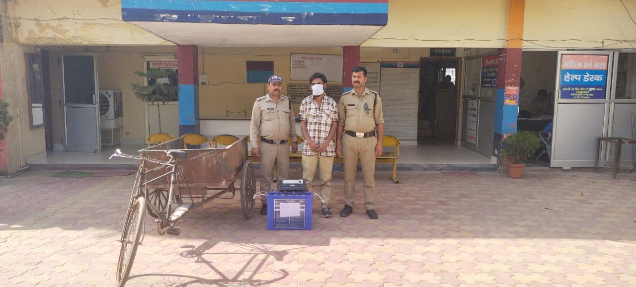 बैटरी,इनवर्टर चोरी करने वाले अभियुक्त चोर को सामान के साथ पुलिस ने किया गिरफ्तार।