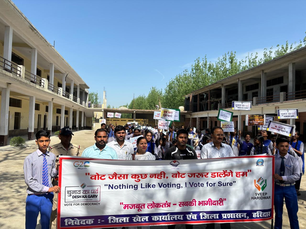 साईकिल रैली प्रमोद चन्द्र पाण्डेय, जिला युवा कल्याण एवं प्रान्तीय रक्षक दल अधिकारी, हरिद्वार के नेतृत्व में बाकरपुर से प्रारम्भ होकर कंकरखाता एवं भिक्कमपुर से होती हुई पुनः बाकरपुर आकर समाप्त हुई। जिसमे लगभग 150 प्रतिभागियों द्वारा उत्साह पूर्वक प्रतिभाग किया गया। इस दौरान मुकेश गुप्ता, प्रधानाचार्य, बालाजी इण्टर काॅलेज द्वारा उपस्थित प्रतिभागियों को मतदाता शपथ भी दिलाई गयी। उक्त आयोजित रैली का मुख्य उद्देश्य जनजागरण कर मतदाताओं को अपने मत का प्रयोग करने हेतु संदेश देना रहा।