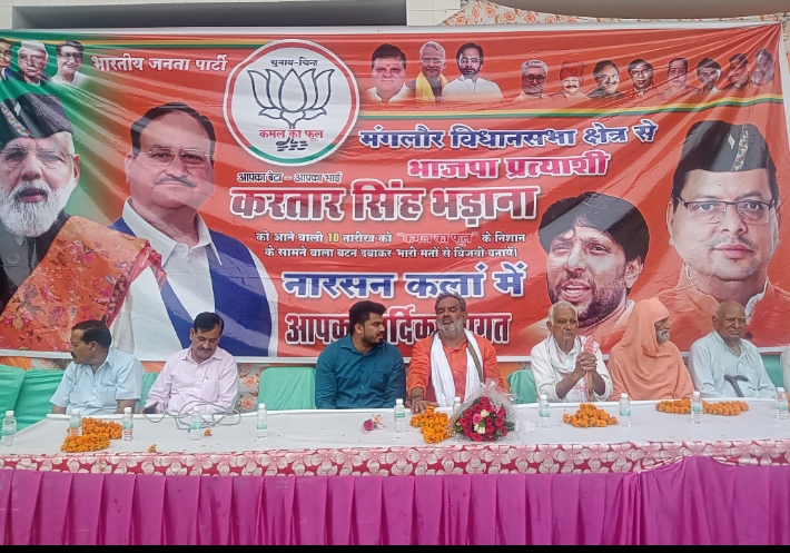 मंगलौर विधानसभा उप चुनाव में पूर्व कैबिनेट मंत्री स्वामी यतीश्वरानंद ने झोंकी पूरी ताकत साथ रहे आदित्य बृजवाल ने पूरी टीम के साथ कि नुकड़ बैठ कर भाजपा प्रतियाशी करतार सिंह भड़ाना के लिए क्षेत्र की जनता से ज्यादा से ज्यादा वोट करने की अपील।