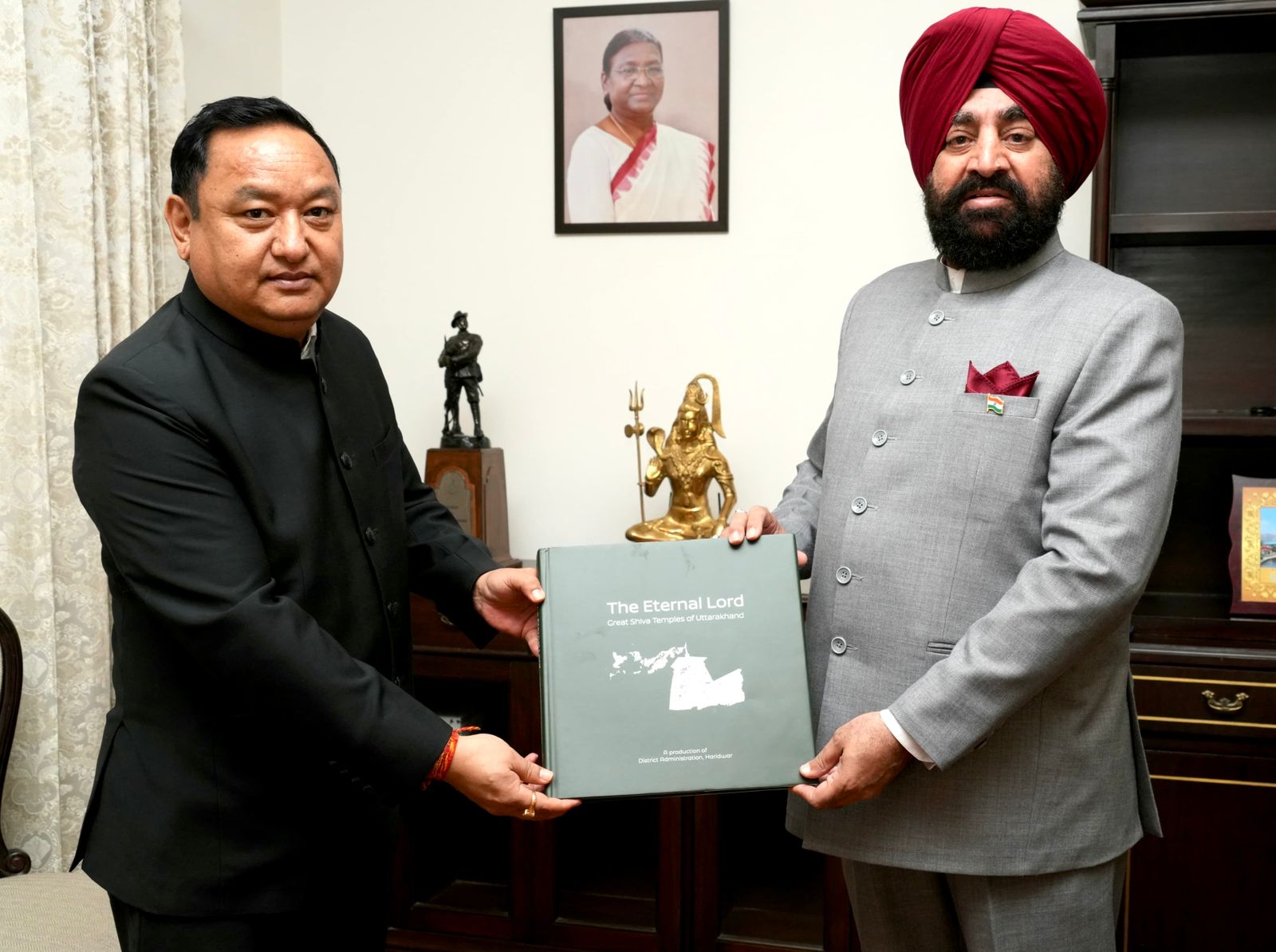 हरिद्वार के जिलाधिकारी धीराज सिंह गर्ब्याल ने राज्यपाल से मुलाक़ात कर कॉफी टेबल बुक दि एटर्नल लॉर्ड ग्रेट शिव टेम्पल्स ऑफ उत्तराखण्ड भेंट की।