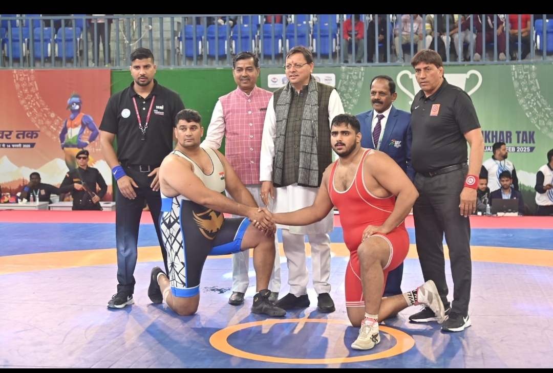 मुख्यमंत्री पुष्कर सिंह धामी ने बुद्धवार को वन्दना कटारिया स्पोर्ट्स स्टेडियम पहुॅचकर 38वें राष्ट्रीय खेलों के अन्तर्गत आयोजित कुश्ती तथा हॉकी प्रतियोगिता का शुभारंभ किया। इस अवसर पर मुख्यमंत्री ने खिलाड़ियों से परिचय प्राप्त किया तथा सभी खिलाड़ियों का उत्साह वर्धन किया।