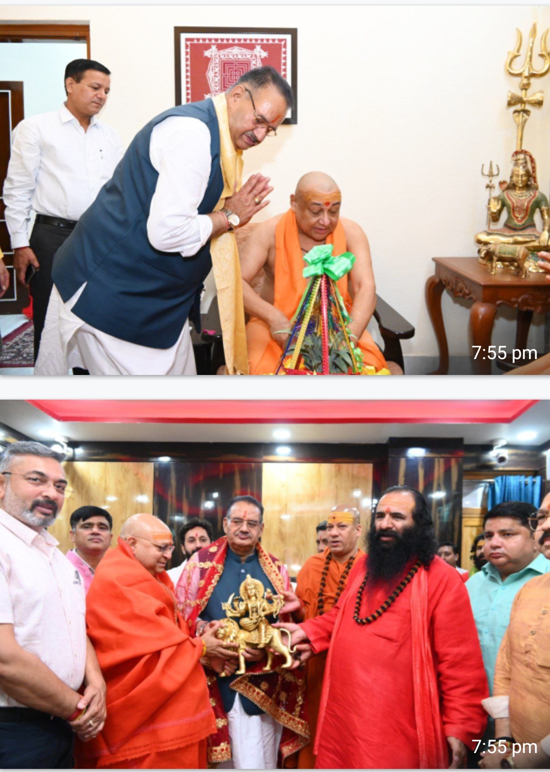 हरिद्वार पहुंचे कैबिनेट मंत्री गणेश जोशी जगतगुरु आश्रम के वार्षिकोत्सव समारोह में भाग लिया और संत-समाज के प्रमुखों से भेंट कर उनका आशीर्वाद प्राप्त किया। इस दौरान मंत्री जोशी ने जगतगुरु शारदा पीठाधीश्वर शंकराचार्य स्वामी राजराजेश्वराश्रम महाराज, आचार्य महामंडलेश्वर निरंजनी अखाड़ा श्री श्री 1008 कैलाशानंद गिरि जी महाराज, आनंद पीठाधीश्वर श्री श्री 1008 आचार्य महामंडलेश्वर स्वामी बालकानन्द गिरी महाराज और अखिल भारतीय अखाड़ा परिषद के अध्यक्ष रविन्द्र पुरी महाराज से भेंट कर आगामी कुंभ तथा आध्यात्मिक चर्चा कर संतो का आशीर्वाद लिया।