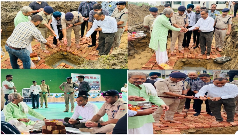 लाइब्रेरी भूमि पूजन करने पुलिस लाइन पहुँचे डीएम मयूर दीक्षित व एसएसपी प्रमेंद्र सिंह डोबाल