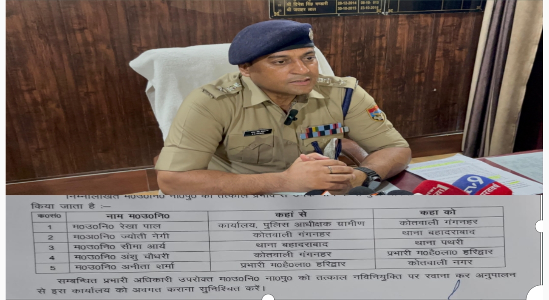 एसएसपी हरिद्वार प्रमेन्द्र सिंह डोभाल ने तत्काल प्रभाव से महिला उप निरीक्षको के स्थानान्तरित के आदेश किया जारी।