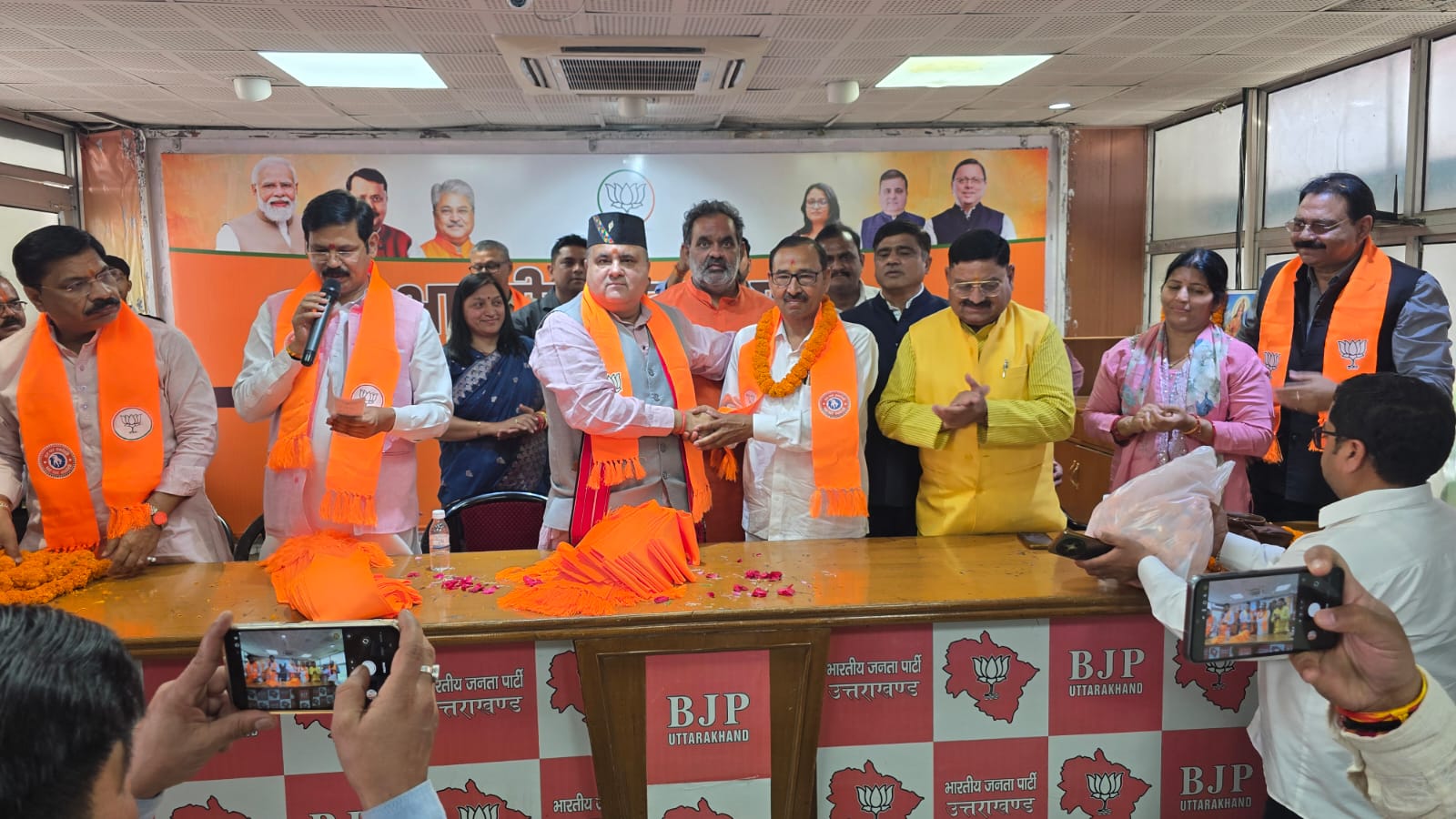 भाजपा प्रदेश अध्यक्ष महेंद्र भट्ट, प्रदेश महामंत्री तरुण बंसल, कुंदन परिहार के साथ प्रदेश उपाध्यक्ष स्वामी यतीश्वरानंद ने फूल मालाएं पहनाकर स्वागत किया। प्रदेश अध्यक्ष महेंद्र भट्ट ने सभी का भाजपा में स्वागत करते हुए कहा कि प्रधानमंत्री नरेंद्र मोदी और प्रदेश में मुख्यमंत्री पुष्कर सिंह धामी की नीतियों से खुश होकर आज विरोधियों के पास अपना वजूद बचाने के लिए कुछ नहीं छोड़ा है।